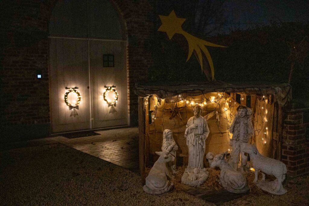 Daarna ging de tocht verder door de Sint-Jozefstraat. Hier hadden verschillende bewoners een speciaal efforke gedaan om een grote kerststal te plaatsen, de ene nog wat mooier dan de andere. En in verschillende tuinen was er nog wat extra kerstversiering aangebracht.