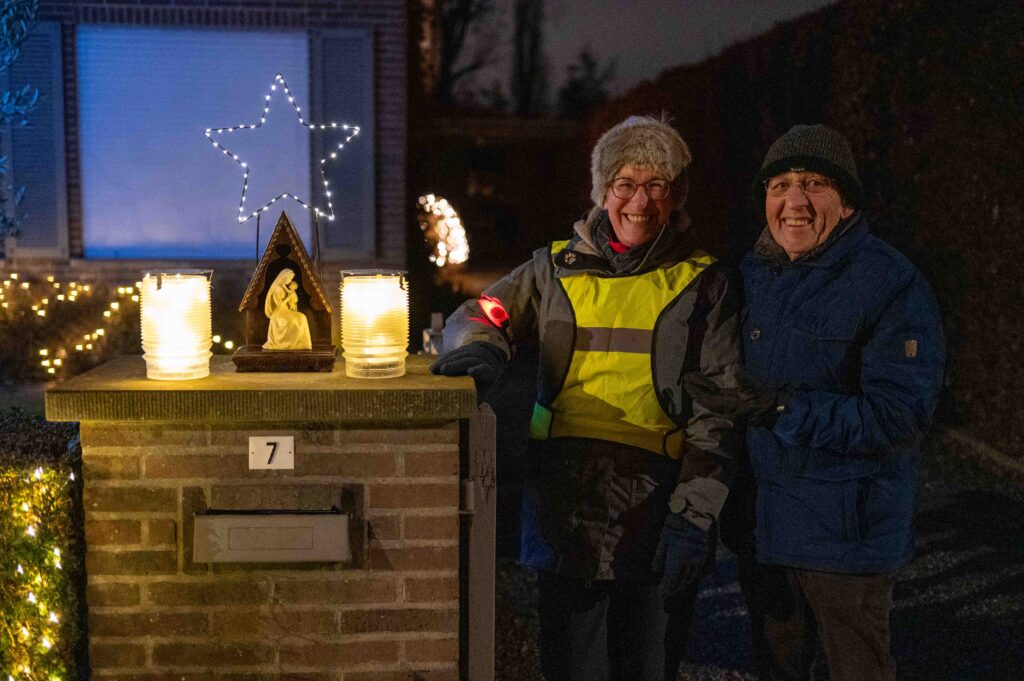 De tocht vertrok langs onze eigenste, mooie kerststal aan de kerk van Heiende en liep via de Hillarestraat, waar verschillende bewoners een kerststalletje of kerstversiering achter hun raam of in de tuin hadden geplaatst, naar de Roggestraat.