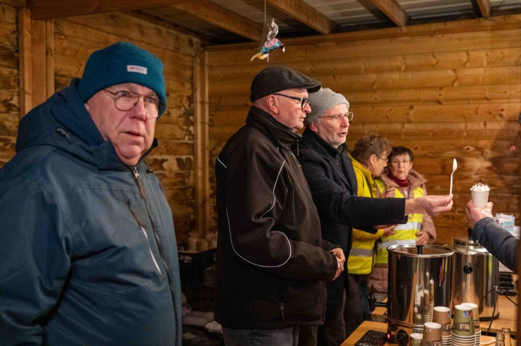 Deze hadden we in een mooie kerstsfeer omgetoverd met lampjes, tentjes en een grote vuurkorf. Alle deelnemers konden hier genieten van een lekker drankje. We hadden naast Gluhwein ook verschillende jenevers, chocomelk en wat frisdranken voorzien. En voor de hongerigen waren er poffertjes met suiker.
