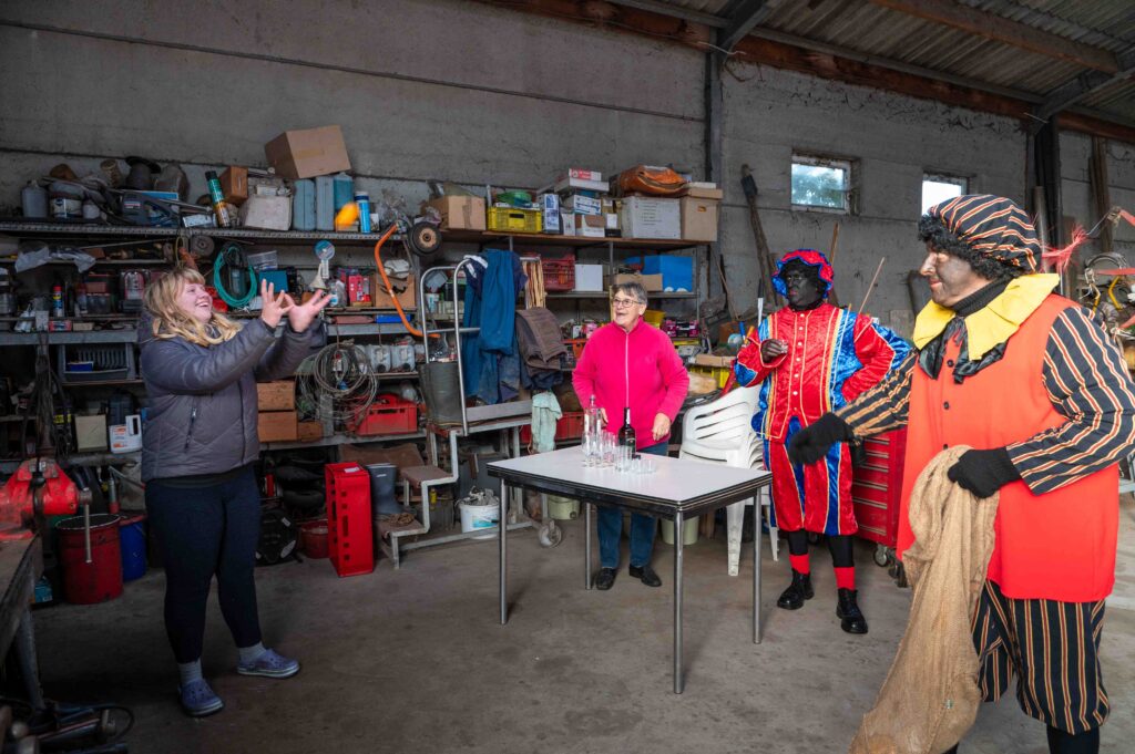 Na een korte tocht in galop door de velden kwamen ze aan bij de voormalige uitbaters van café ’t Hemelrijk. Willy en Lilianne verwenden de Sint en zijn gevolg ook hier met de nodige lekkernijen en drankjes. Het was een leuke bijeenkomst van familie, vrienden en buren die samen met hun kinderen genoten van het bezoek.