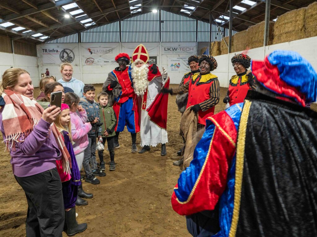 De stoet trok via het centrum van Heiende verder naar stal De Vogelzang, waar de jongste ruitertjes vol trots hun paardrijkunsten lieten zien. De Pieten reikten snoepzakjes uit aan deze kleine ridders en amazones. Ondertussen genoten de Pieten en de helpers van een welverdiende kop dampende soep. Een moment van rust, maar de reis was nog lang niet voorbij.