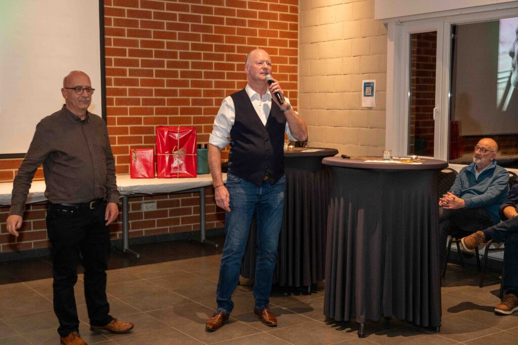 Bij ontvangst werd iedereen verwelkomd met een glas wijn of een frisdrank, en een gratis receptie tot 21 uur. Onze nieuwbakken voorzitter ,Wim Vervaet, opende deze avond met een warm welkom en een oproep om actief deel te nemen aan onze activiteiten . Christian Cansse, die onze beweging twee jaar heeft geleid, wordt nu onze nieuwe medevoorzitter. Bedankt Christian voor je inzet als voorzitter gedurende de voorbije twee jaar.