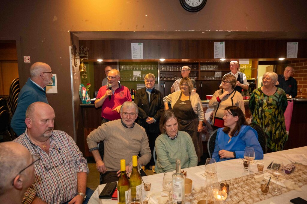 Na een dankwoord werd iedereen uitgenodigd om een glaasje te drinken in ’t Trefpunt waar dan kon nagepraat worden over dit toch wel unieke eindejaarconcert.