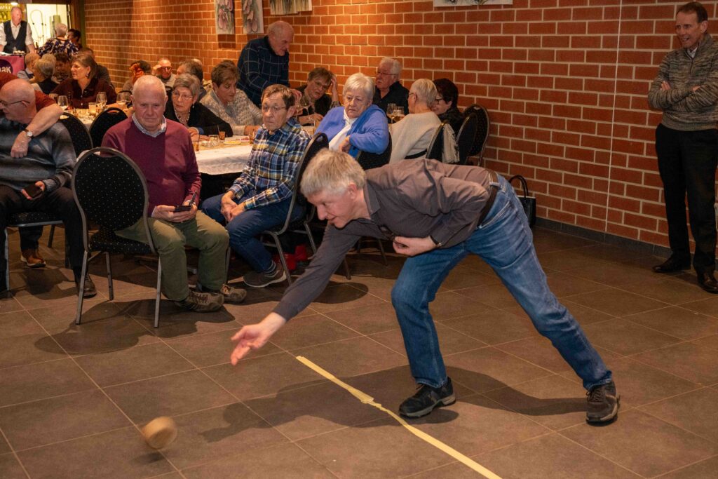 Maar liefst 92 leden schreven zich in voor de jaarlijkse nieuwjaarsreceptie. Bij aankomst konden de aanwezigen meteen deelnemen aan “Het Spel”, Trou Madam, een oude volkssport. Dankzij “Het Spel” zat de sfeer er meteen goed in. Later op de avond speelden zes vrouwen tegen elkaar en zes mannen tegen elkaar de halve finale.