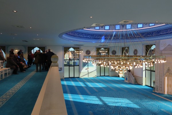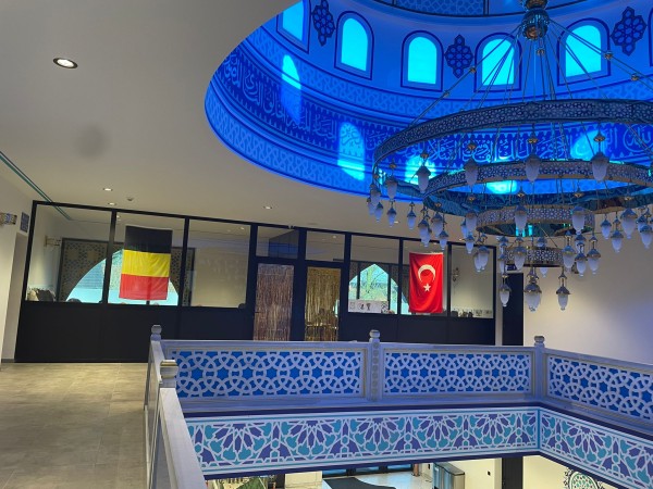 Daarna werden we ondergedompeld in de ondergrondse gebouwen, waarbij een grote feestzaal en een mortuarium onze aandacht trokken. Eens we weer bovengronds kwamen is de moskee zodanig ingericht dat de gebedsruimtes, leslokalen en ontmoetingsruimtes (lees cafetaria) voor mannen en vrouwen steeds gescheiden zijn per verdieping. De werking van de moskee draait volledig op vrijwilligers en door een zeer sterke vrouwenwerking, waarbij onze gastvrouw Kara Ayse ons een versnapering aanbod. Deze werking brengt zo een verrijkende uitwisseling tot de Lokerse gemeenschap teweeg en bevordert het samenleven als Lokeraars.